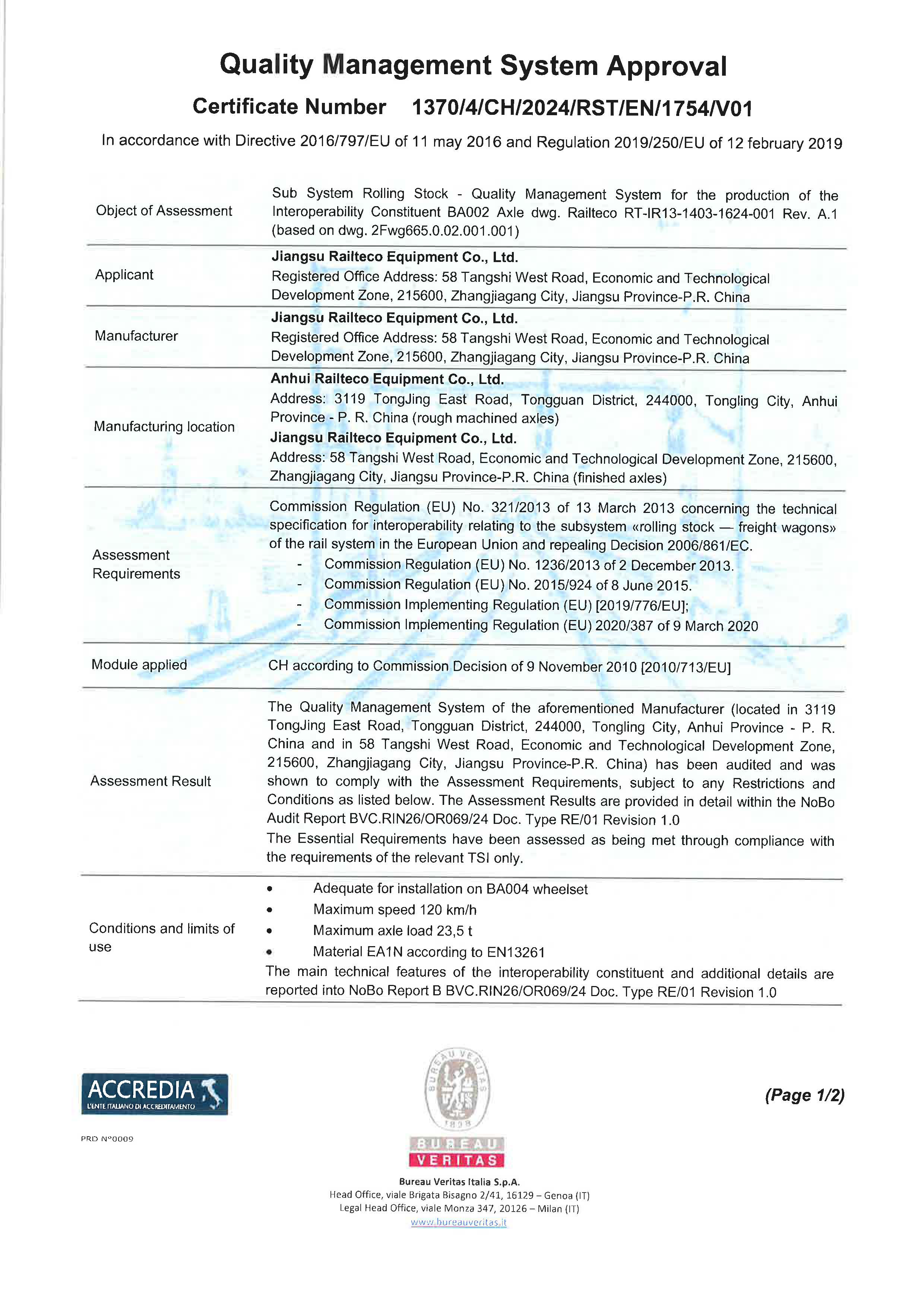 TSI FOR AXLE
